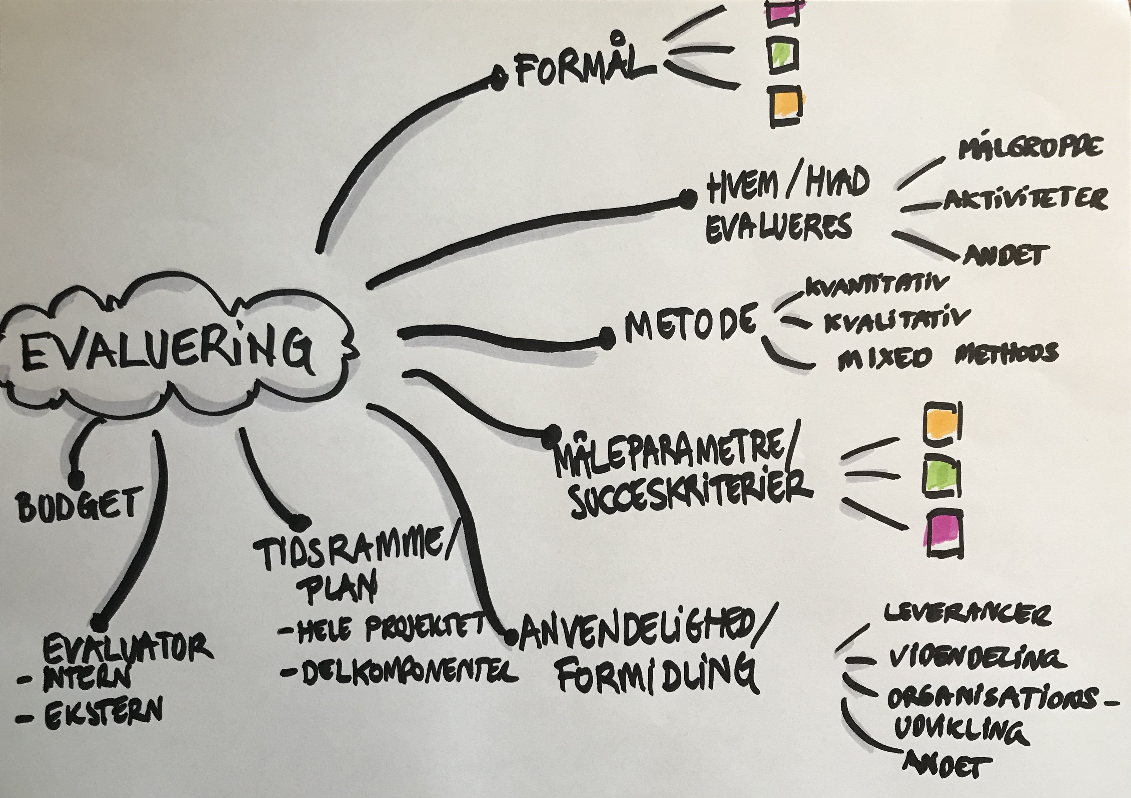 Det sikrer en tryghed i, at I ikke bruger unødige ressourcer (både økonomi og medarbejdertimer) på en evaluering - Sikre at få indarbejdet evaluering fra projektstart, så viden anvendes løbende i projektets fremdrift.